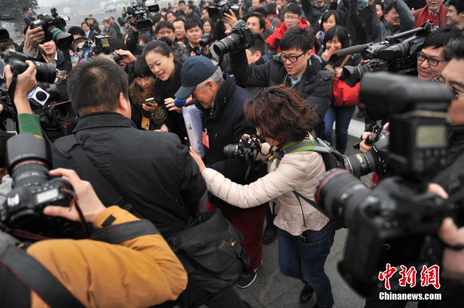 3月3日15时,中国人民政治协商会议第十二届全国委员会第二次会议在人民大会堂开幕。图为赵本山委员“突出重围”步入会场。中新网记者 金硕 摄