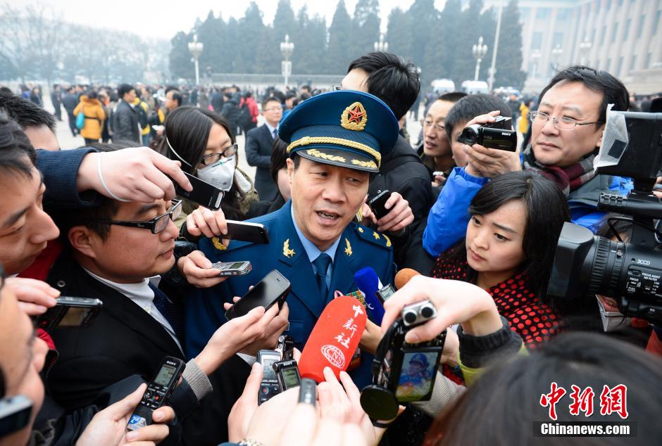 3月3日15时,中国人民政治协商会议第十二届全国委员会第二次会议在人民大会堂开幕。记者追访正在步入会场的朱和平委员。中新社发 刘震 摄
