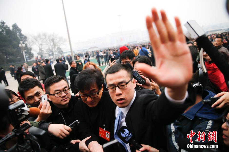 3月3日15时,中国人民政治协商会议第十二届全国委员会第二次会议在人民大会堂开幕。成龙步入会场。中新社发 杜洋 摄