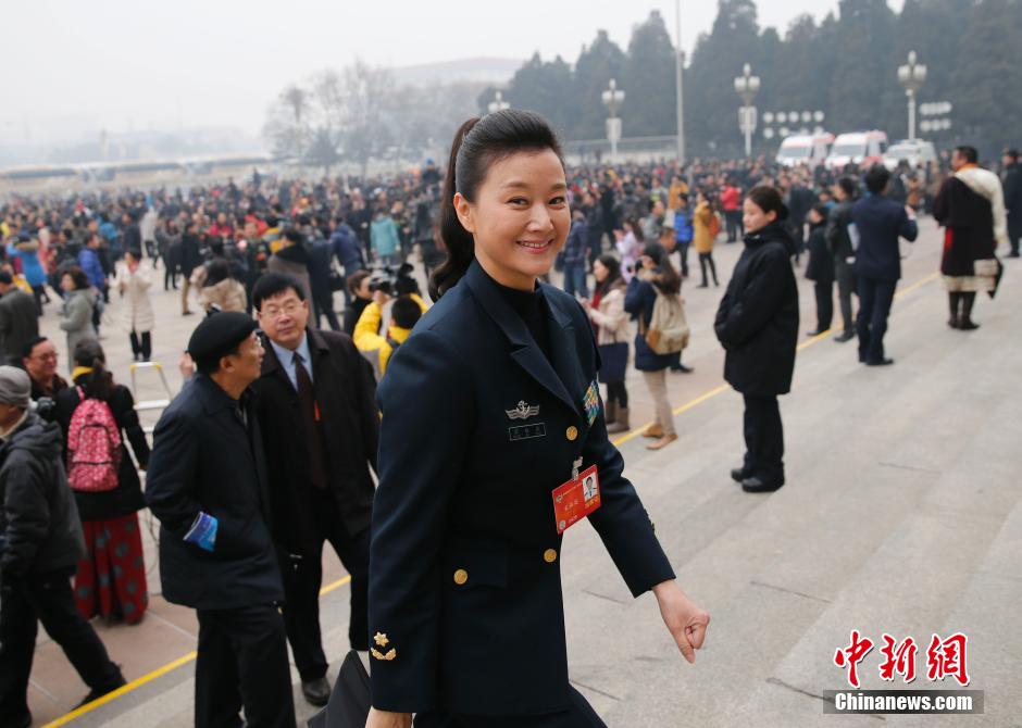 3月3日15时,中国人民政治协商会议第十二届全国委员会第二次会议在人民大会堂开幕。宋祖英委员步入会场。中新社发 杜洋 摄