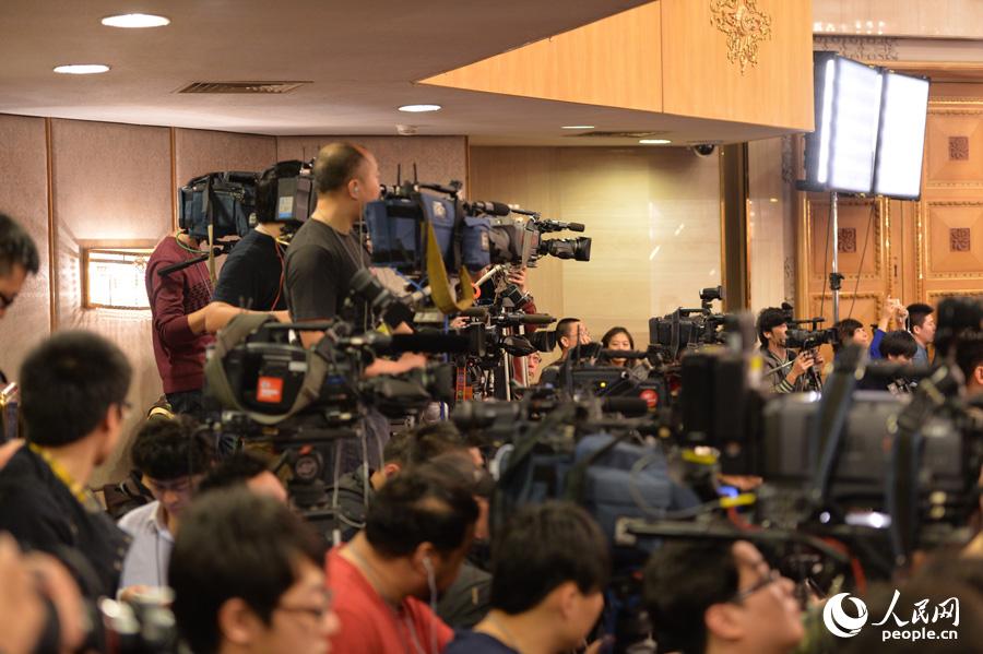 参与两会新闻采访的中外记者达到3000多人。各媒体“长枪短炮”齐上阵,报道两会,采访代表委员,争抢新闻的最佳阵地。